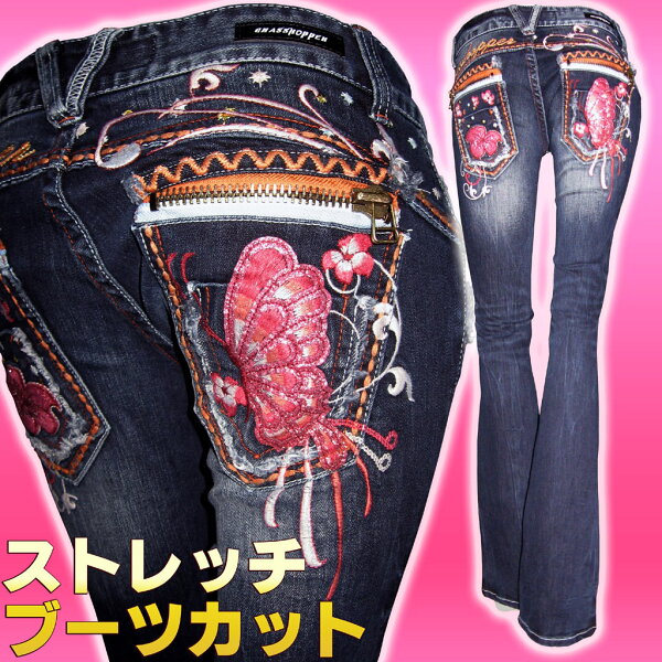 グラスホッパー grasshopper #396 美脚 ストレッチブーツカット デニム/ジーンズ 蝶/刺繍★レッドペッパー(redpepper),STUDIOR.P,DRIVEJEANSの元デザイナーのいる新ブランドGRASSHOPPER!【smtb-KD】わけあり並の激安価格!あす楽対応【YDKG】【送料無料】