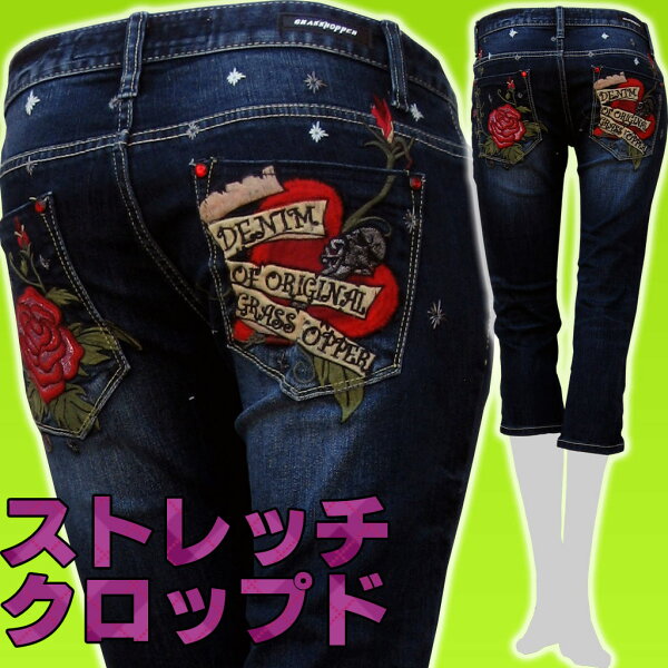 グラスホッパー grasshopper #737 美脚 ストレッチクロップド デニム/ジーンズ 蝶/刺繍★レッドペッパー(redpepper),STUDIOR.P,DRIVEJEANSの元デザイナーのいる新ブランドGRASSHOPPER!【smtb-KD】わけあり並の激安価格/あす楽対応【YDKG】【送料無料】